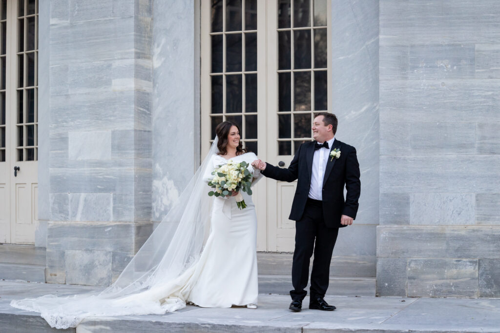 James and Liz had a very Philly wedding with their wedding ceremony at the St. Thomas of Villanova Chapel, and their Reception at The Ballroom at the Ben! We traveled around to some of the historical hot spots in Center City like the Merchant Exchange Building and ended with night time portraits in front of City Hall!